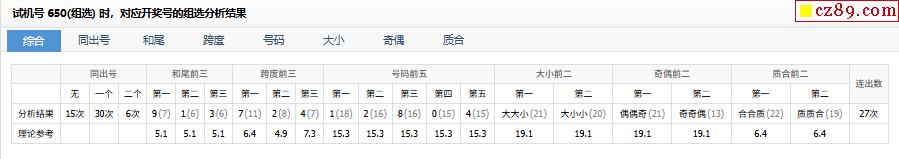 > 314期福彩3D试机号650对应开奖号的组选分析结果