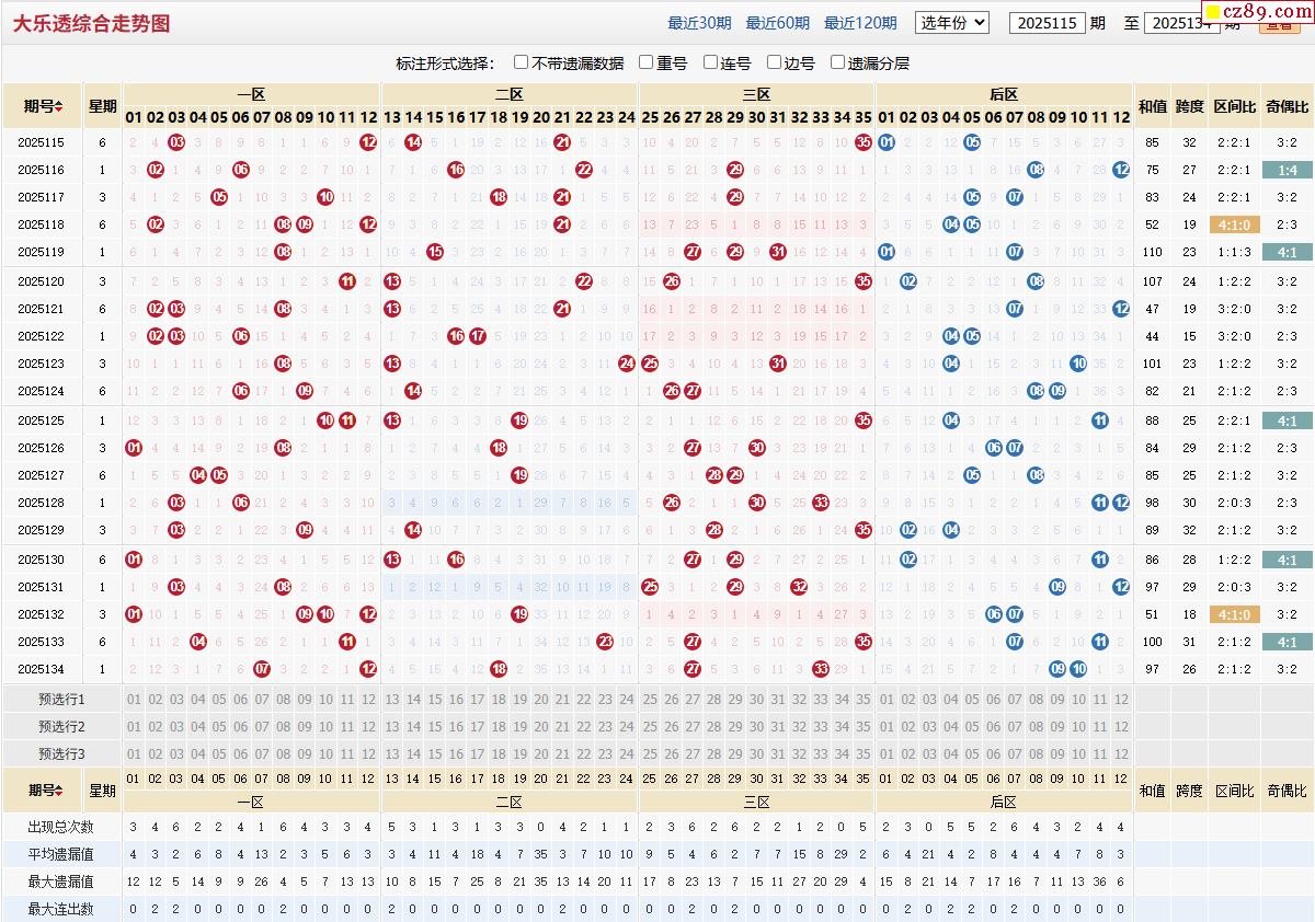 首页 > 大乐透预测 > 25年135期体彩大乐透近期走势图分析
